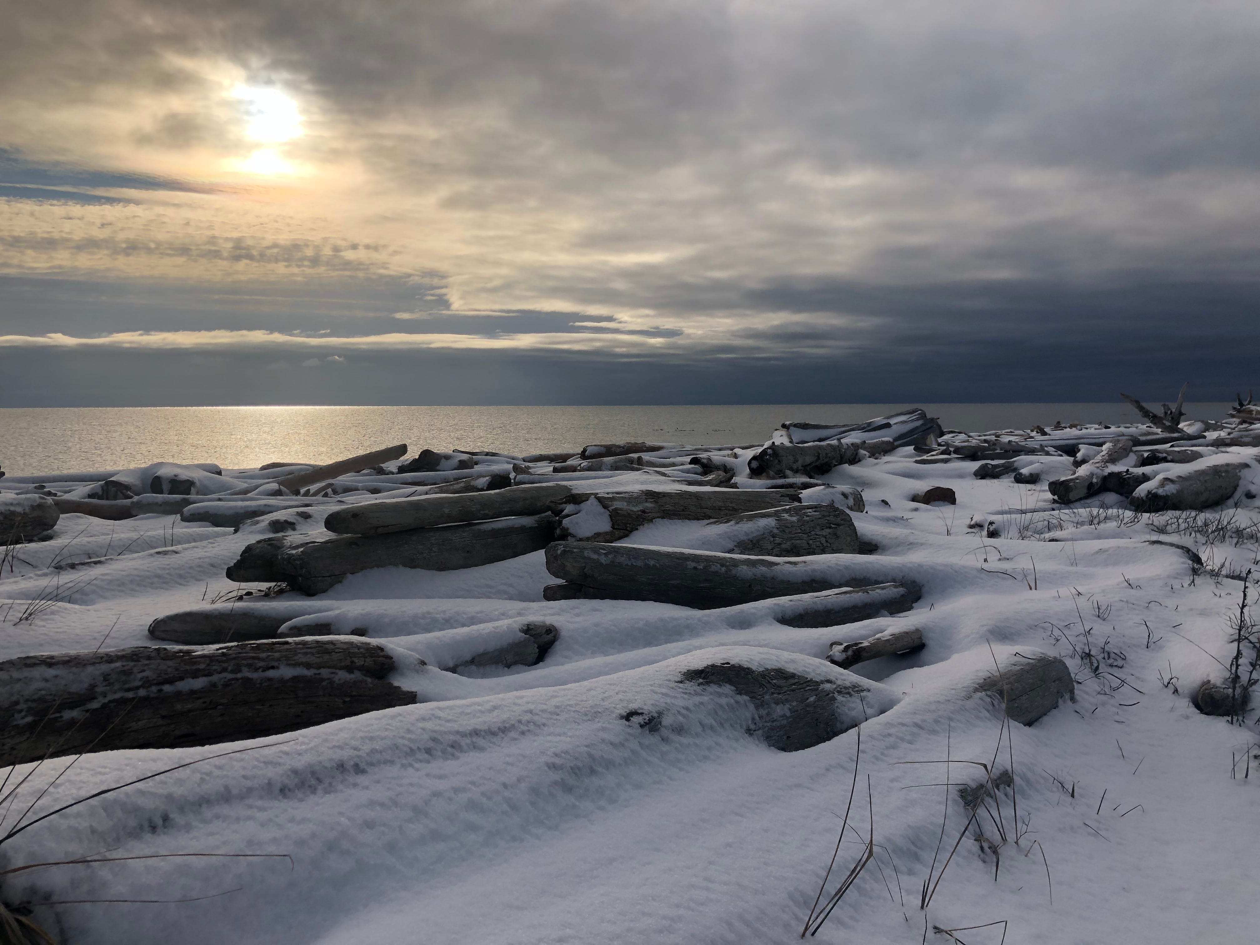 We began the day before dawn, my family did, the temperature far below zero, some snow and a lot of ice having accumulated the night before, and drove and drove and drove and drove. It got colder and slicker and more treacherous the farther north we went, even as the weather, by aesthetic measures, improved. The sky became an eye-watering blue, the sun slicing rays through air so sharp it sounded like glass breaking, Mount Baker, one of the many volcanoes along the spine of the West coast, rising jagged and pure white out of the Cascades. There was ice even on the salt water, snow sitting in tufts atop that soft ice, in amongst which birds huddled in mats, too close together and us passing at too high a speed for my inexperienced eyes to know for sure, but alcids I think, possibly pigeon guillemots, or marbled murrelets. The sun set an hour and half ago as I write, and it was 15 degrees last I checked.